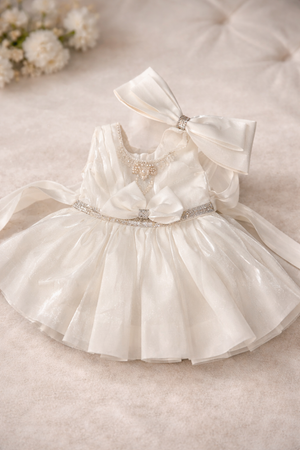 Gracefully designed baby party dress with a soft satin-finish fabric