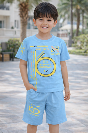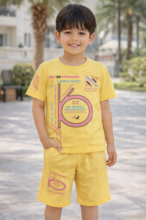 Boys 3-in-1 Launch Party Cotton T-Shirt & Shorts Set (Yellow, Coral & Sky Blue)
