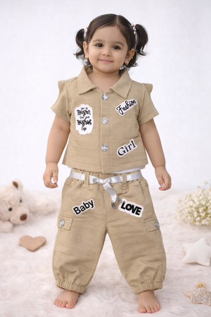 A stylish and comfortable co-ord set designed for little fashion lovers. Made with soft textured fabric, this outfit features playful applique patch details that add a modern and trendy look. Designed for ease of movement and all-day comfort, it’s perfect for everyday wear, playtime, and casual outings.