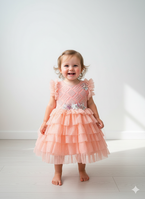 The lightweight fabric allows easy movement, making it perfect for toddlers and young girls who love to twirl and explore. Thoughtful accents add a subtle sparkle, while the airy layers ensure comfort throughout the day.
